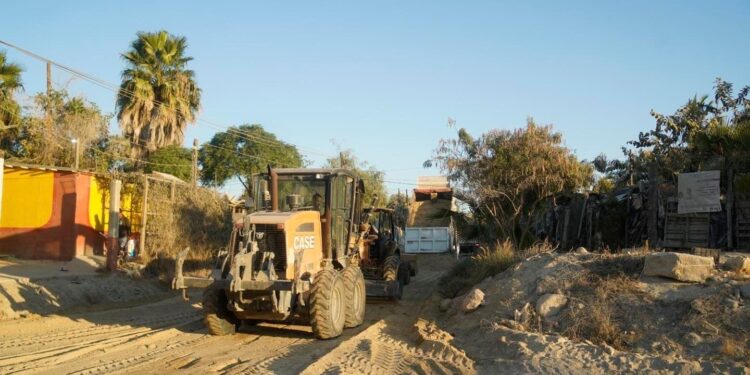 Los Cabos, B.C.S., 09 de enero 2023.- Con la finalidad de contar con vias alternas que permitan desahogar el tráfico vehicular, personal de la Dirección General de Servicios Públicos que encabeza Leonel Leyva Luna, realizó jornadas de limpieza en los accesos aledaños a la carretera Transpeninsular, en esta ocasión se concentraron en la zona conocida como el vado de Santa Rosa.