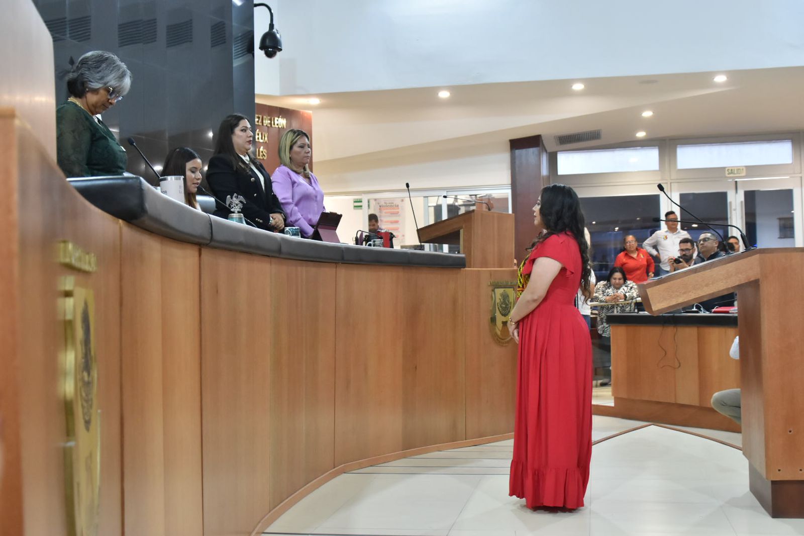 La presidenta de la Mesa Directiva diputada Guadalupe Vázquez Jacinto tomó la protesta de ley a la nueva ombudsman ante integrantes del pleno y asistentes del recinto legislativo.