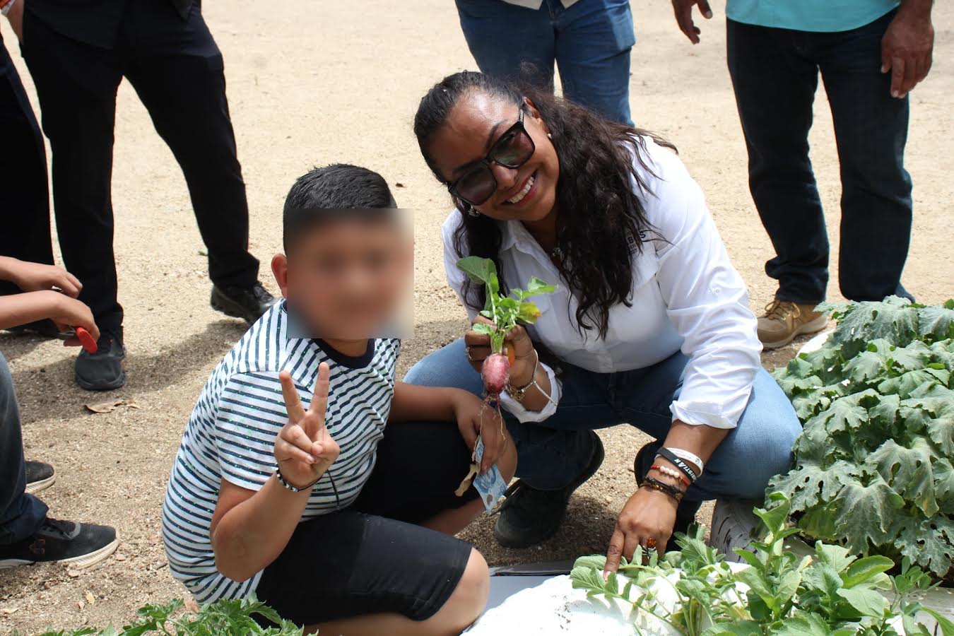 Asimismo, con motivo del Día de la Niñez, De la O Uribe llevó obsequios a los estudiantes, quienes celebraban esta importante fecha. Como parte del recorrido, también participó en una actividad organizada por el personal docente, en la que los alumnos mostraron las plantas cultivadas en su huerto escolar.