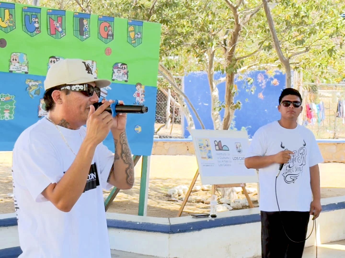 Los Cabos, Baja California Sur.- El XV Ayuntamiento de Los Cabos, a través del Instituto de la Cultura y las Artes (ICA), llevó a cabo la presentación del proyecto “Rap, Un mensaje para todos” en la Escuela Primaria “Estado de Tabasco”, ubicada en la subdelegación de Caduaño de la delegación de Miraflores.