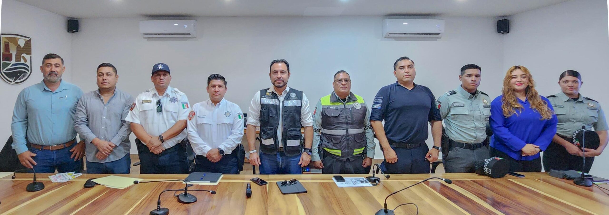 Los Cabos, Baja California Sur.- El presidente municipal Christian Agúndez Gómez, personal de la Dirección General de Seguridad Pública, Policía Preventiva y Tránsito Municipal, así como de la Guardia nacional, ofrecieron una rueda de prensa para anunciar el inicio de la Semana de la Cultura Vial, que se desarrollará del 23 al 27 de junio en el municipio de Los Cabos.