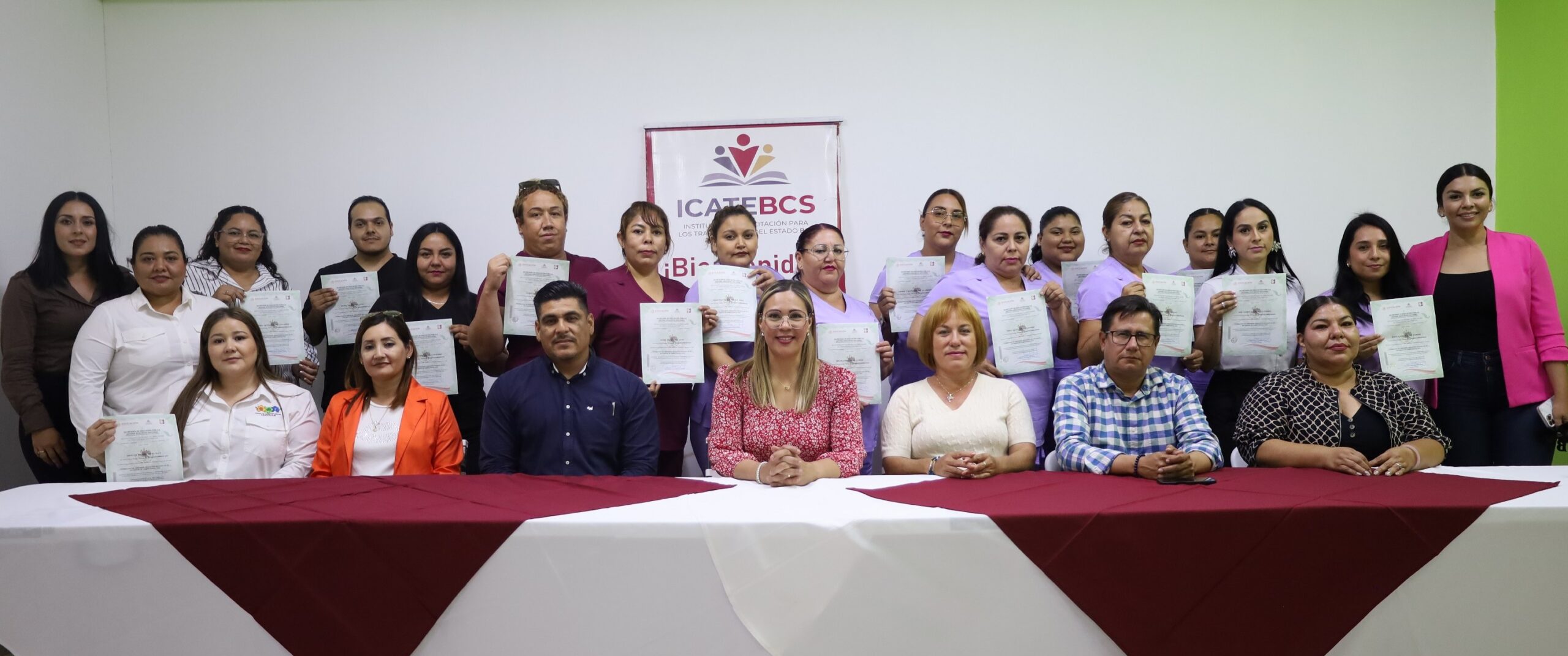 El Instituto de Capacitación para los Trabajadores del Estado de BCS (ICATEBCS), en alianza con el Ayuntamiento de Loreto, llevaron a cabo la entrega de constancias a participantes del curso titulado “Formación de Asistente Educativo Basado en el Estándar de Competencia 0435” por concluir de manera satisfactoria dicha formación, indicó la directora general, Cinthya Fátima Montufas Chávez.