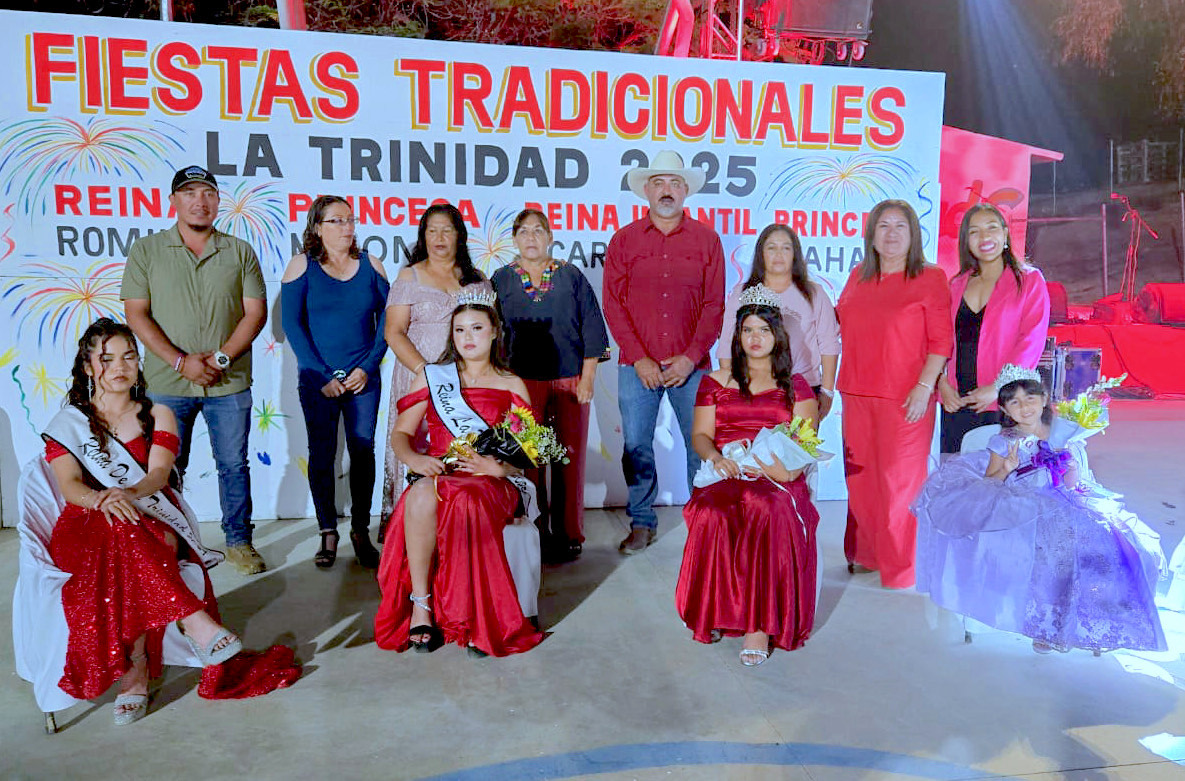 De manera similar, en subdelegación de La Trinidad en Cabo San Lucas, la comunidad celebró la coronación de sus nuevas soberanas: Romina I como Reina de las Fiestas 2025, acompañada de la Princesa Naomi, la Reina Infantil Carolina, y la Princesa Infantil Ivanna.