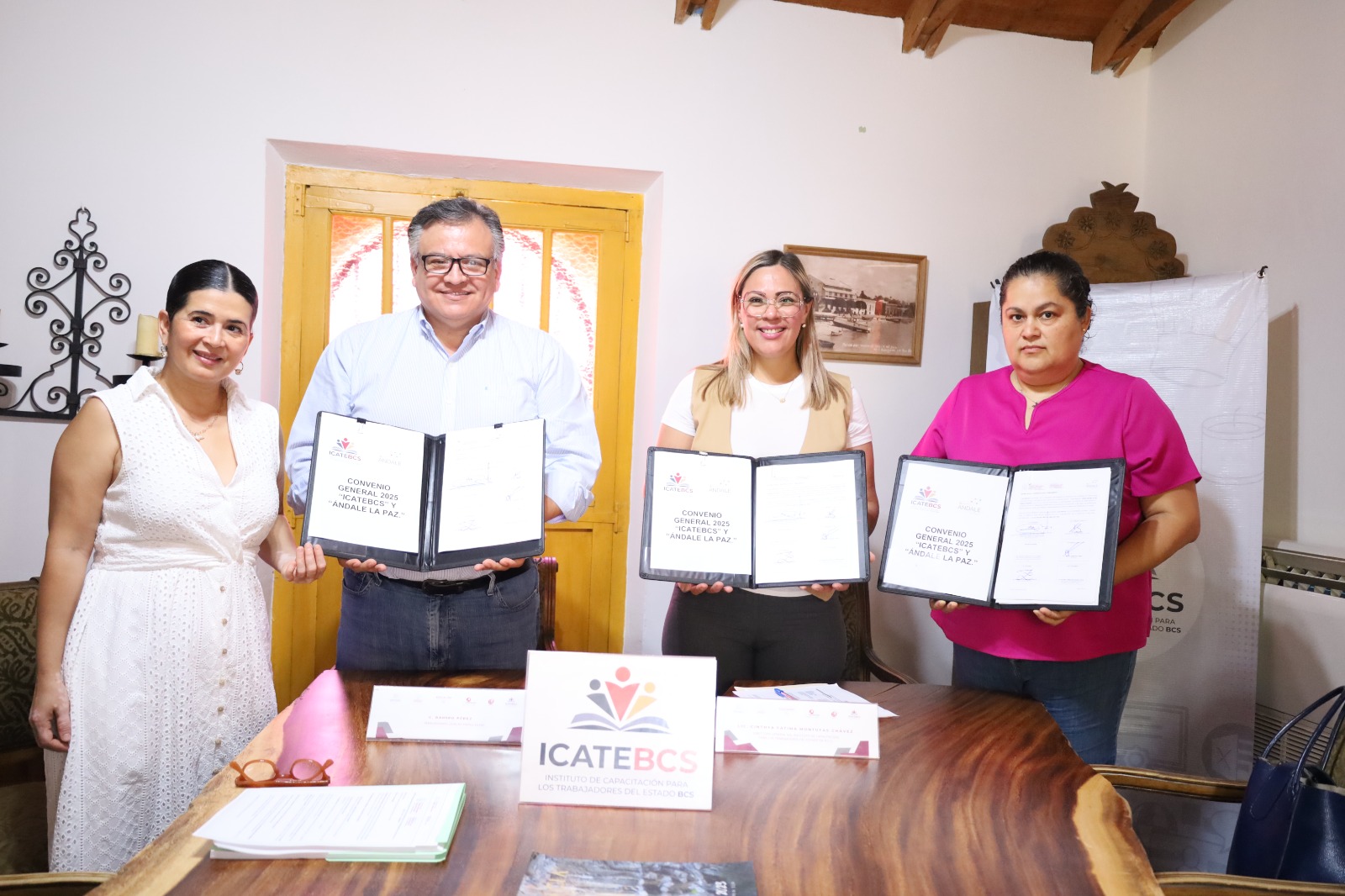 El Instituto de Capacitación para los Trabajadores del Estado de Baja California Sur (ICATEBCS) y la Asociación Civil (A.C.) Ándale La Paz, firmaron convenio de colaboración que busca impulsar la capacitación, formación y desarrollo de habilidades laborales, con un enfoque en la inclusión de grupos vulnerables del estado, informó Cinthya Fátima Montufas Chávez, directora general del instituto.