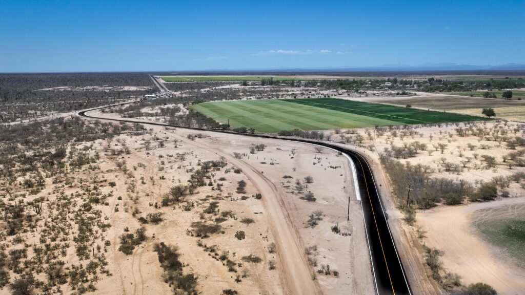 Acompañado por el alcalde Roberto Pantoja Castro y la Secretaria de Planeación Urbana, Infraestructura, Movilidad, Medio Ambiente y Recursos Naturales, Carolina Armenta Cervantes, el mandatario anunció la conclusión de la pavimentación del camino entre los ejidos Ley Federal de Aguas 3 y 4, así como el reencarpetado del tramo que conecta de el Ejido 4 a la carretera Transpeninsular, con una inversión conjunta de 48.32 millones de pesos.