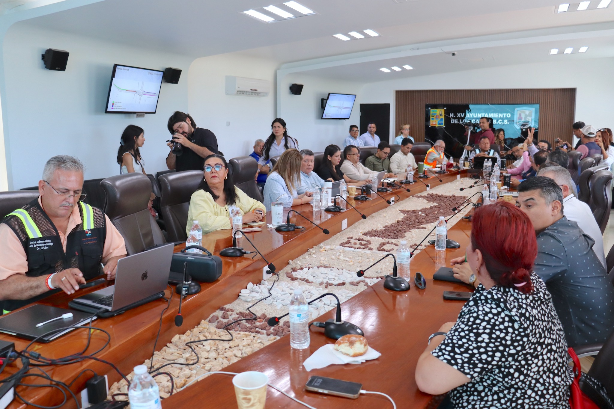 En el mismo contexto, Flores Rivera remarcó que bajo la instrucción y compromiso del alcalde, el XV Ayuntamiento de Los Cabos realiza de forma periódica la toma de decisiones en colaboración con autoridades de los tres órdenes de gobierno, asociaciones, cámaras y colegios, priorizando mantener la seguridad de la ciudadanía y contrarrestando afectaciones a la circulación vehicular.