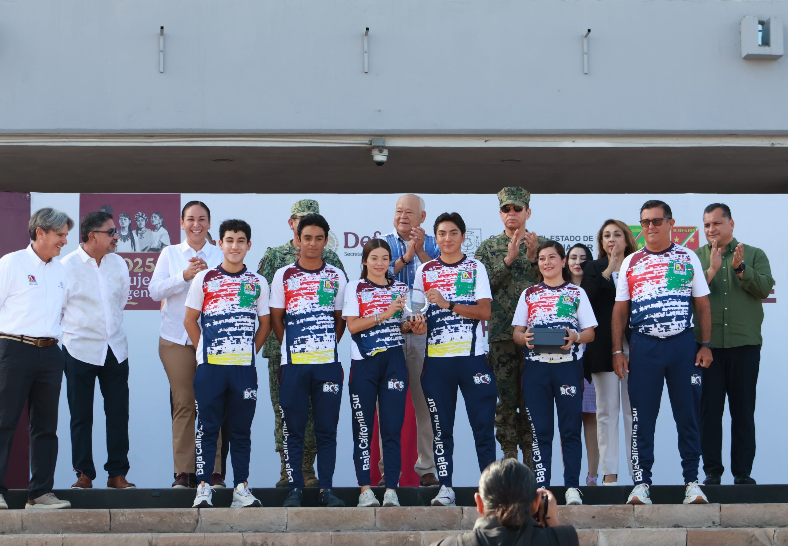 Durante la ceremonia de izamiento de la Bandera Nacional, en la Plaza de la Reforma de Palacio de Gobierno, el gobernador Víctor Manuel Castro Cosío, recibió la medalla de segundo lugar nacional, obtenida por la delegación de ciclismo de Baja California Sur en la Olimpiada Nacional CONADE 2025.