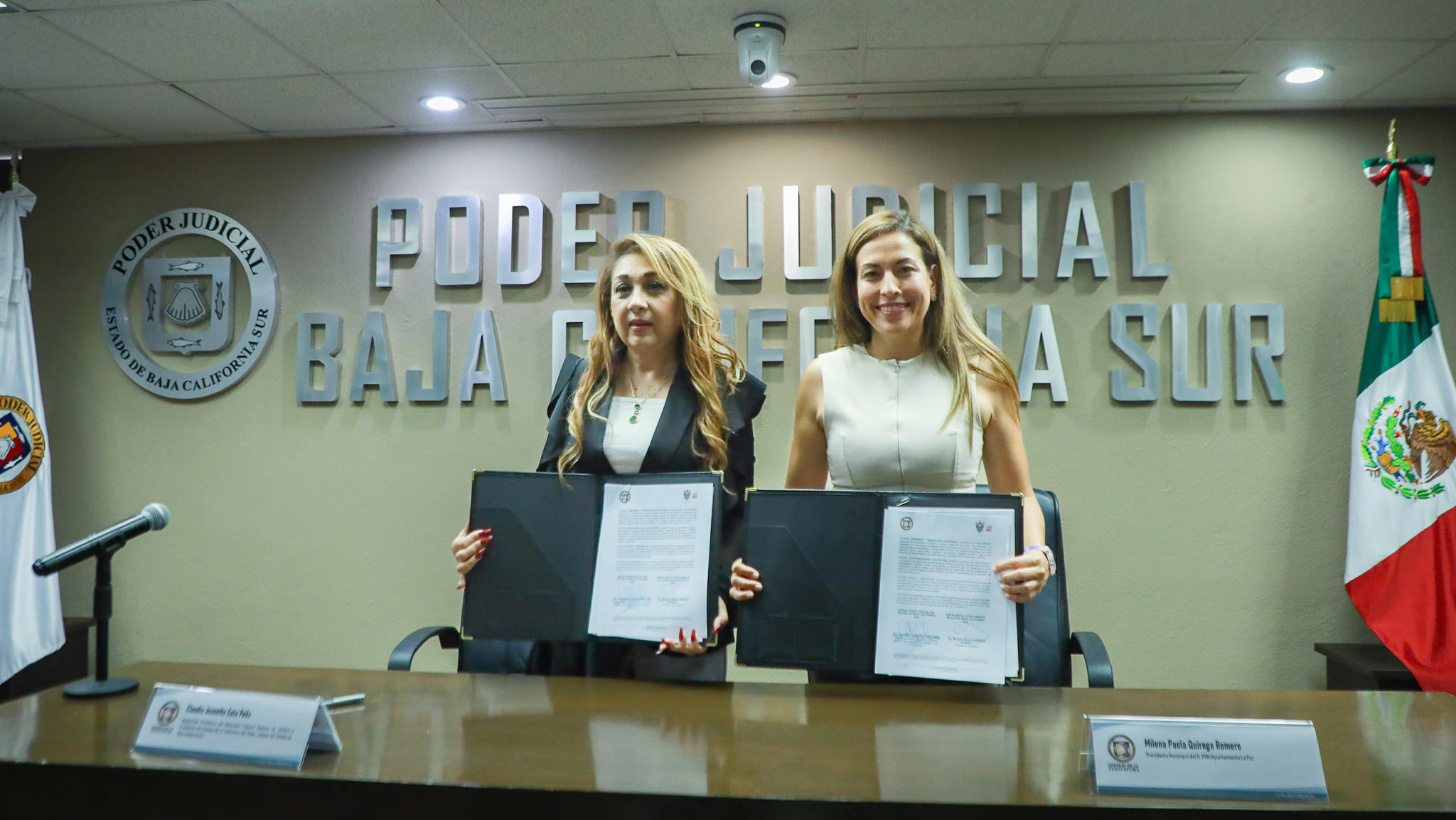 La presidenta municipal de La Paz, Milena Quiroga Romero, encabezó la firma de un convenio de colaboración entre el H. XVIII Ayuntamiento de La Paz y el Poder Judicial del Estado de Baja California Sur, con el propósito de promover y fortalecer los Mecanismos Alternativos de Solución de Controversias (MASC).