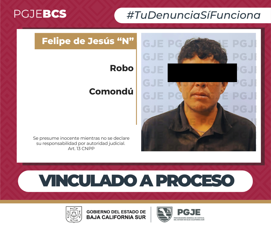 La Procuraduría General de Justicia del Estado (PGJE) de Baja California Sur, tendrá 2 meses para cerrar la investigación complementaria y presentar a la autoridad judicial los datos de prueba que relacionen a Felipe de Jesús N, en el delito de robo, que probablemente cometió el pasado 17 de marzo del año en curso en Ciudad Constitución.