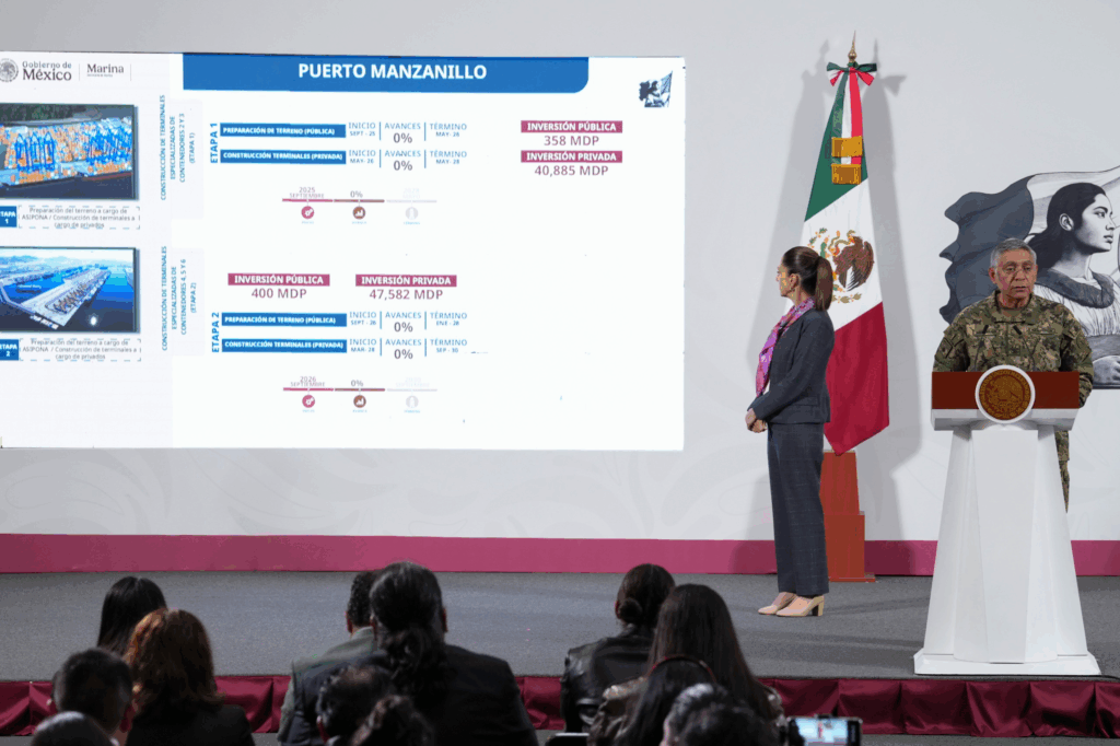 Se presentó un proyecto de inversión histórica por 296 mil millones de pesos para modernizar seis puertos clave del país: Ensenada, Manzanillo, Veracruz, Acapulco, Lázaro Cárdenas y Progreso. La Secretaría de Marina coordinará las obras con un enfoque logístico, turístico y de seguridad.