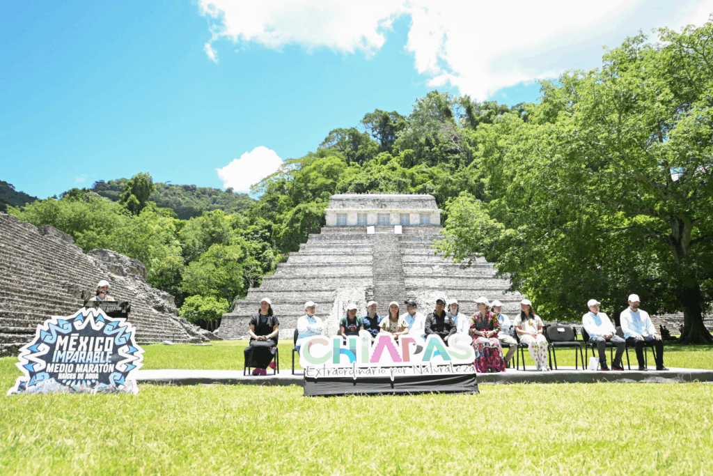 Desde la zona arqueológica de Palenque, el Gobierno de México, en coordinación con el Gobierno de Chiapas, presentaron el medio maratón México Imparable, Raíces de Agua, que se realizará el próximo 14 de septiembre y es el inicio de un serial de cuatro carreras que se realizarán en caminos sagrados de la Ciudad de México, Oaxaca y Chihuahua, con el objetivo de enaltecer las culturas de los pueblos originarios.