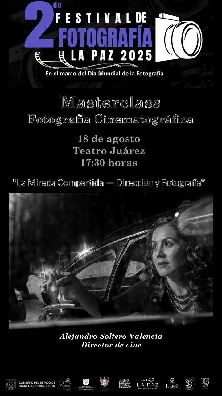 El próximo lunes 18 de agosto a las 17:30 horas, en el Teatro Juárez, tendrá lugar la masterclass titulada “La mirada compartida”, con el director cinematográfico Alejandro Soltero Valencia, así lo dio a conocer Juan Lara Guzmán, director municipal de Cultura del XVIII Ayuntamiento de La Paz.
