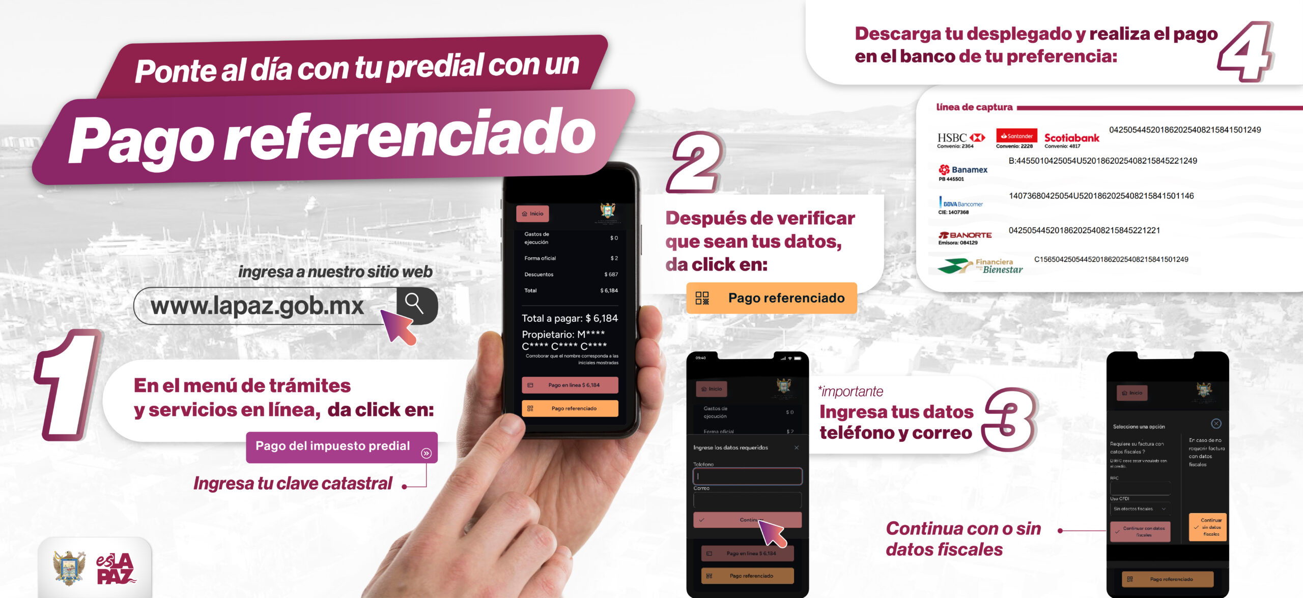 El Tesorero Municipal del XVIII Ayuntamiento de La Paz, Jassiel Enríquez Varela, emitió una serie de recomendaciones para que los contribuyentes realicen de manera correcta y sin contratiempos el pago referenciado en línea del impuesto predial, de forma fácil, rápida y segura.