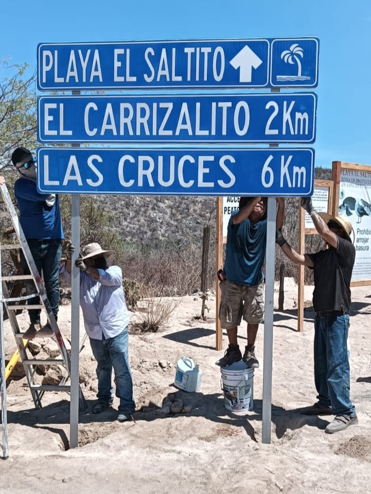 Derivado del derribo del muro que impedía el acceso hacia la zona, se procedió a la instalación de señalética oficial en el camino que conduce a playa El Saltito y playa El Carrizalito, con el propósito de garantizar la orientación adecuada de los visitantes y el respeto a la vía pública.
