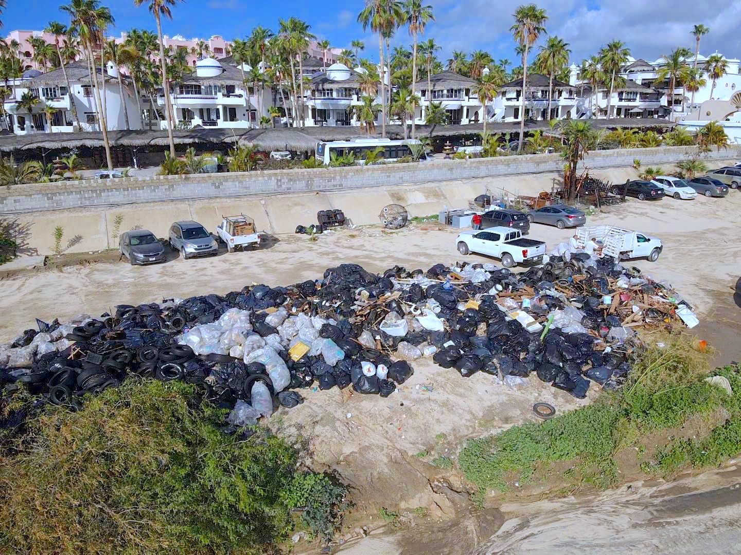 Los Cabos, Baja California Sur. – El Gobierno municipal que preside Christian Agúndez Gómez, por medio del personal de la Zona Federal Marítimo Terrestre (ZOFEMAT), efectuó una jornada de limpieza y rehabilitación en playa 8 Cascadas en Cabo San Lucas, en la cual se recolectaron un total de 110 toneladas de basura, tras el paso del huracán Lorena.