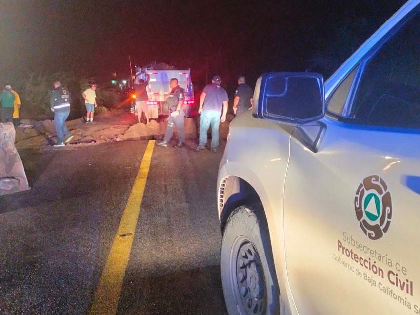 La Subsecretaría de Protección Civil del Gobierno del Estado de Baja California Sur informa a la ciudadanía que, tras registrarse un socavón sobre la carretera 19 en el tramo La Paz – Todos Santos, a la altura del kilómetro 50, personal especializado se encuentra realizando los trabajos necesarios para el restablecimiento seguro de la circulación vehicular.