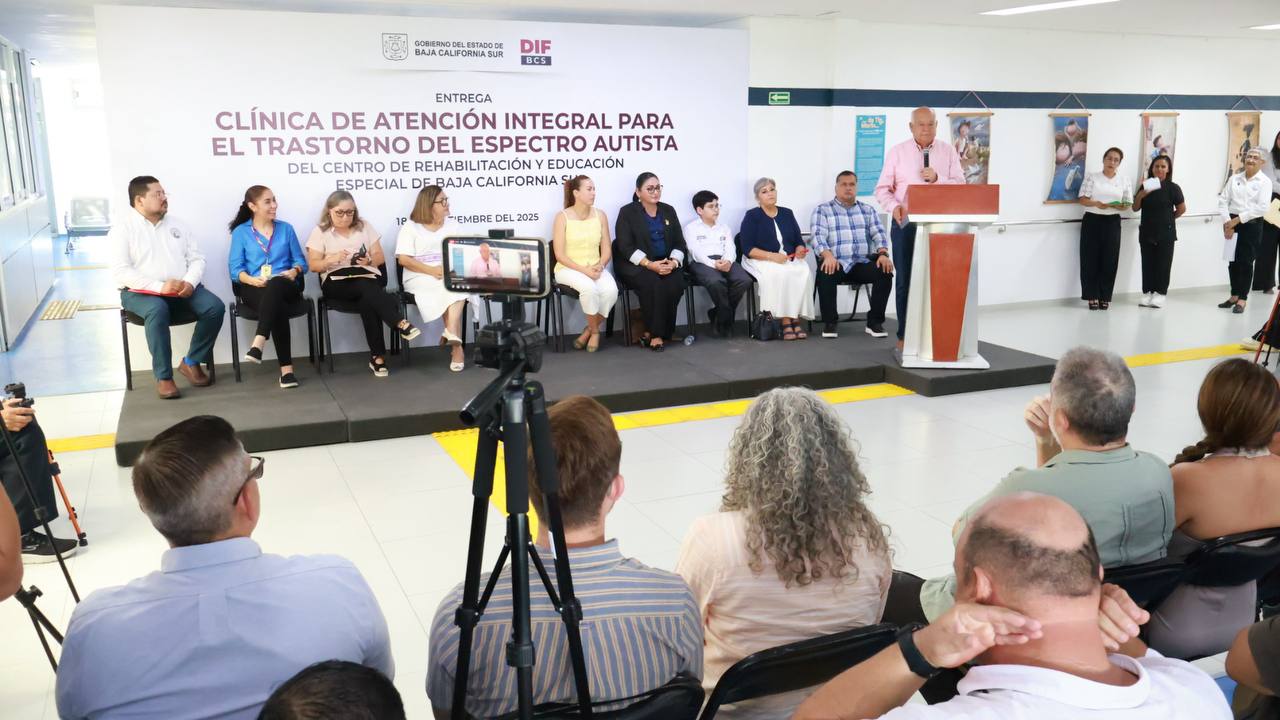 El gobernador del estado, Víctor Manuel Castro Cosío encabezó la mañana de este jueves la entrega de la Clínica de Atención Integral para el Trastorno del Espectro Autista (TEA) en el Centro de Rehabilitación y Educación Especial (CREE) de Baja California Sur, la cual requirió de una inversión de más de un millón de pesos. El objetivo de esta acción es ampliar la cobertura de los servicios de salud y rehabilitación en beneficio de la niñez y adolescencia.