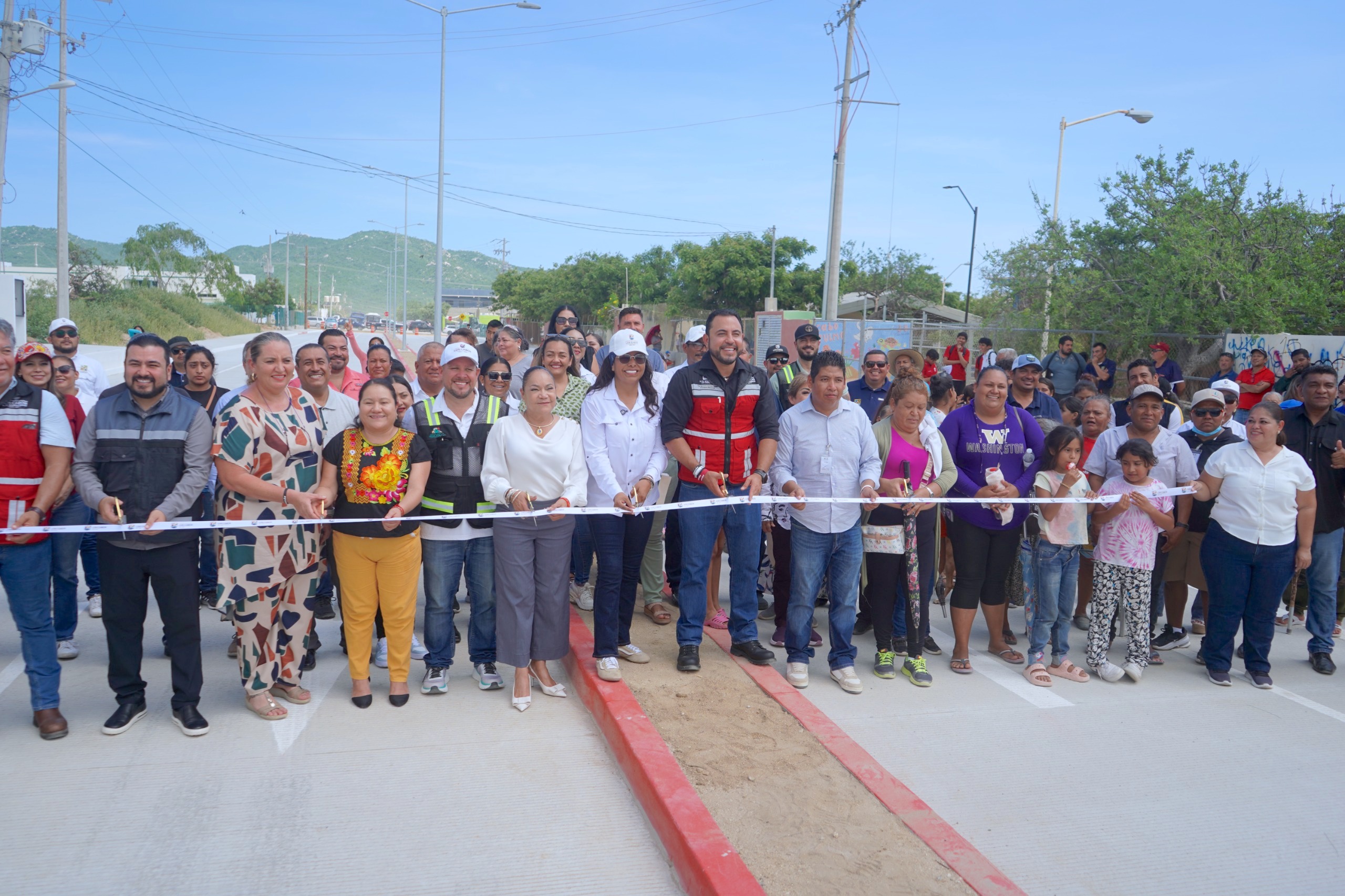 Los Cabos, Baja California Sur.– Con una inversión total de $20 millones 723 mil 537 pesos, el presidente municipal de Los Cabos, Christian Agúndez Gómez, en compañía de integrantes del Cabildo, la delegada de Cabo San Lucas, Karina de la O Uribe y directores municipales, entregó las obras de pavimentación integral de tres vialidades en la colonia Leonardo Gastélum Villalobos, beneficiando directamente a más de 5 mil habitantes.
