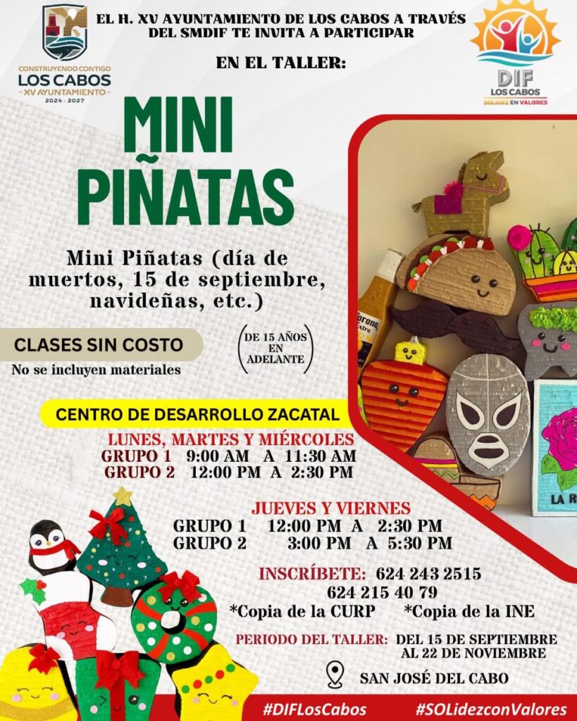 Con esta iniciativa, el DIF Los Cabos refuerza su compromiso de impulsar acciones que favorezcan a las familias cabeñas, ofreciendo espacios de aprendizaje y convivencia que promuevan habilidades, valores y tradiciones culturales.