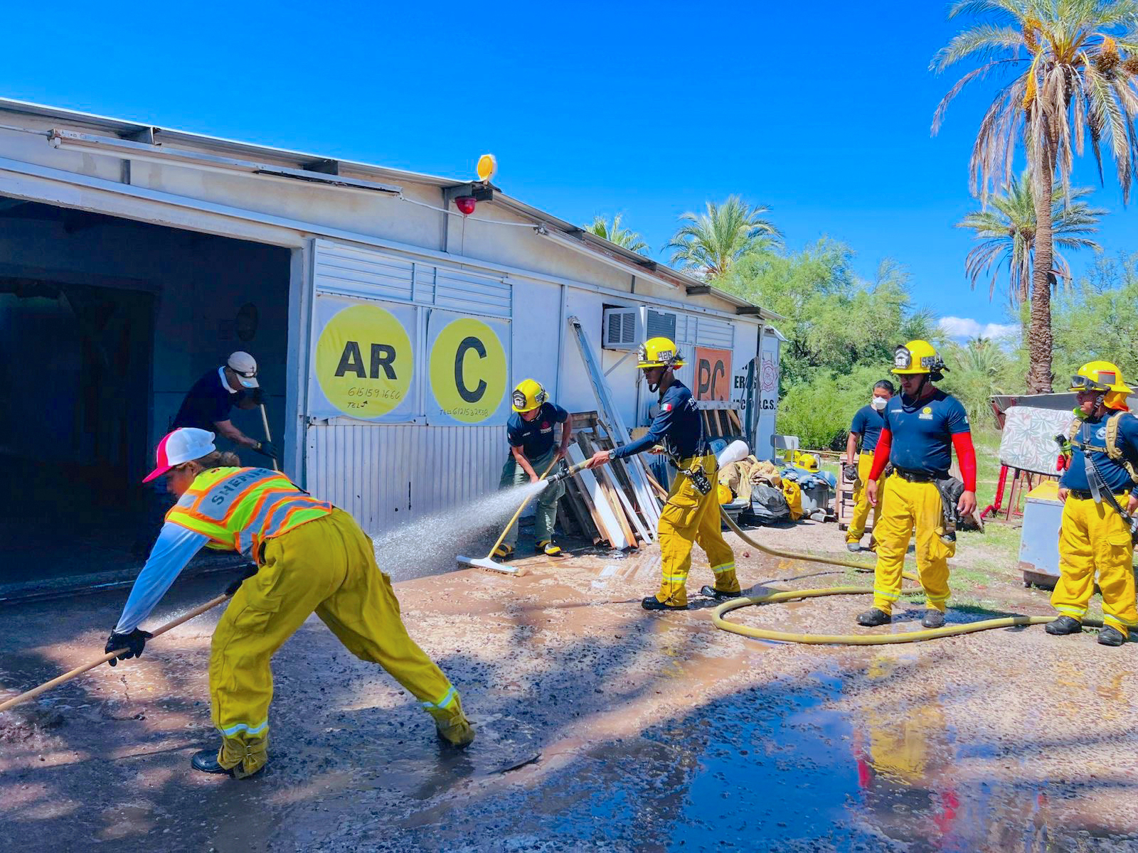 Las acciones que se han llevado a cabo han sido en estrecha coordinación con Bomberos de Cabo San Lucas, Seguridad Pública, Guardia Nacional, Protección Civil y autoridades estatales y locales, logrando atender de manera conjunta la rehabilitación de las zonas afectadas.