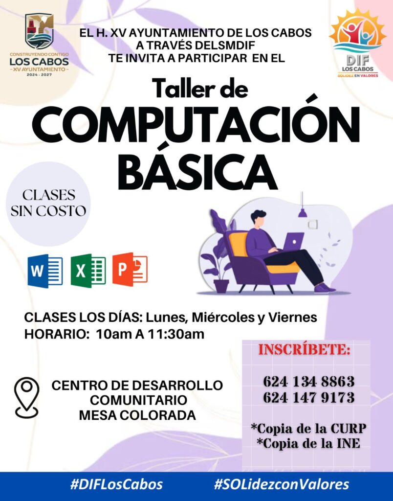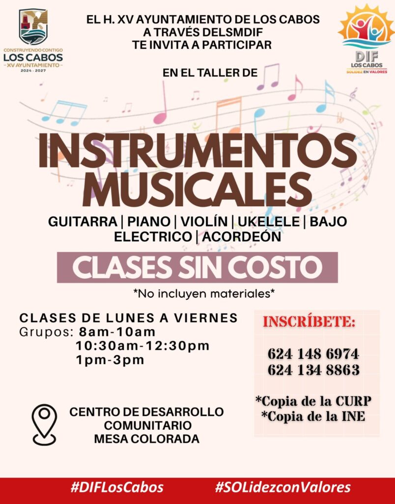 Para inscribirse en cualquiera de los talleres, se solicita copia de la CURP y la INE, y pueden comunicarse a los números correspondientes a cada sede para mayor información. Estas actividades forman parte de la estrategia del DIF Los Cabos bajo la campaña #SOLidezconValores para fortalecer el tejido social mediante el desarrollo de habilidades útiles y productivas.