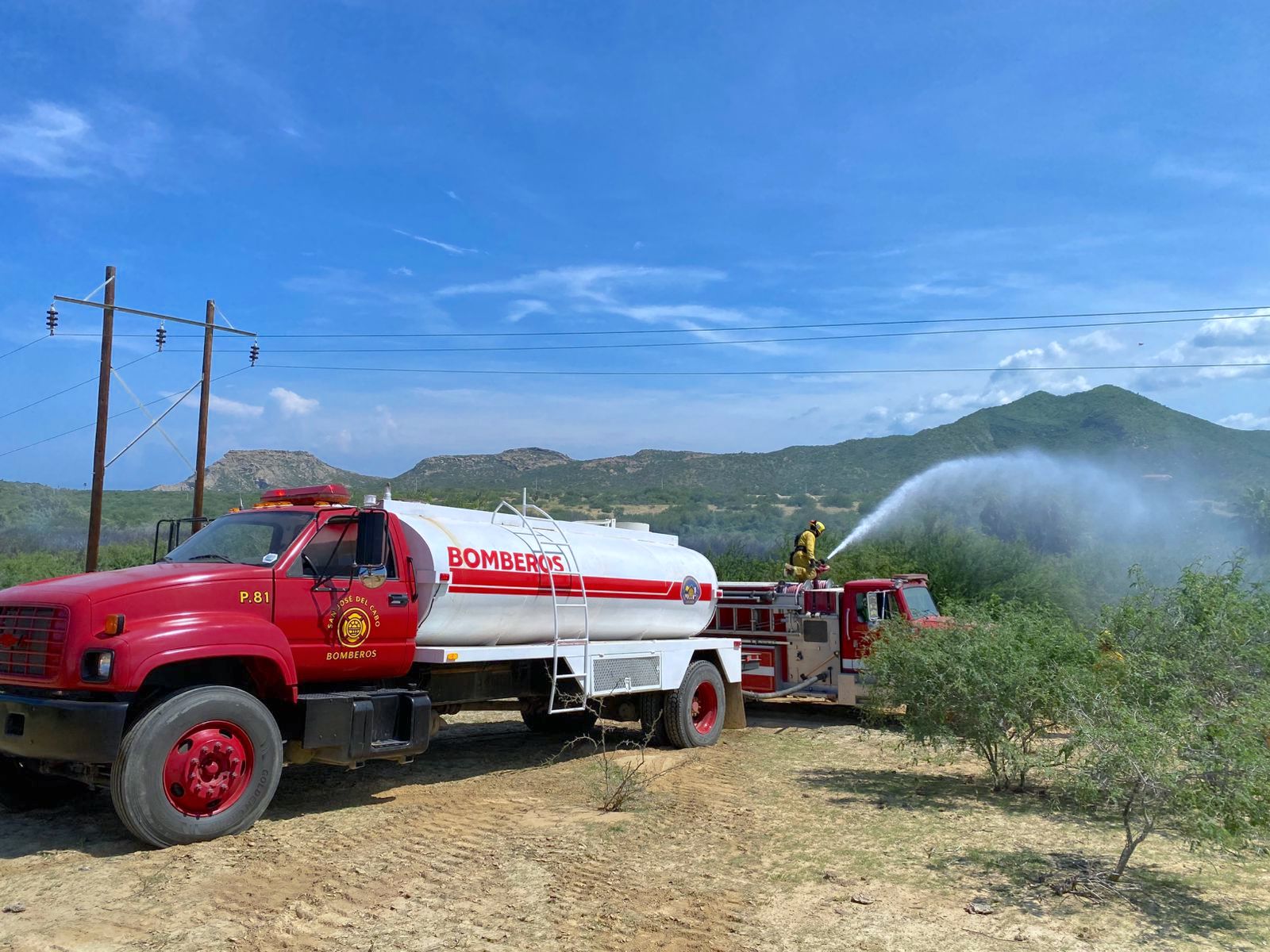 Los Cabos, Baja California Sur.- Luego de cinco horas de intensas maniobras, 15 elementos del Departamento de Bomberos de San José del Cabo lograron sofocar en su totalidad un incendio forestal registrado la mañana de este miércoles 24 de septiembre en la comunidad de Buenavista. El siniestro fue provocado por un corto circuito originado tras la caída accidental de un poste de electricidad.