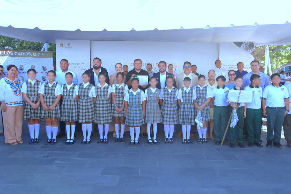 Los Cabos, Baja California Sur. – Con una ceremonia de honores cívicos realizada en la plaza pública Teniente Antonio Mijares, el XV Ayuntamiento de Los Cabos concluyó las actividades conmemorativas del mes patrio, evento que incluyó la premiación del Concurso Municipal de Poesía Coral “Patria y Libertad”, con la participación de la comunidad estudiantil y cultural del municipio.