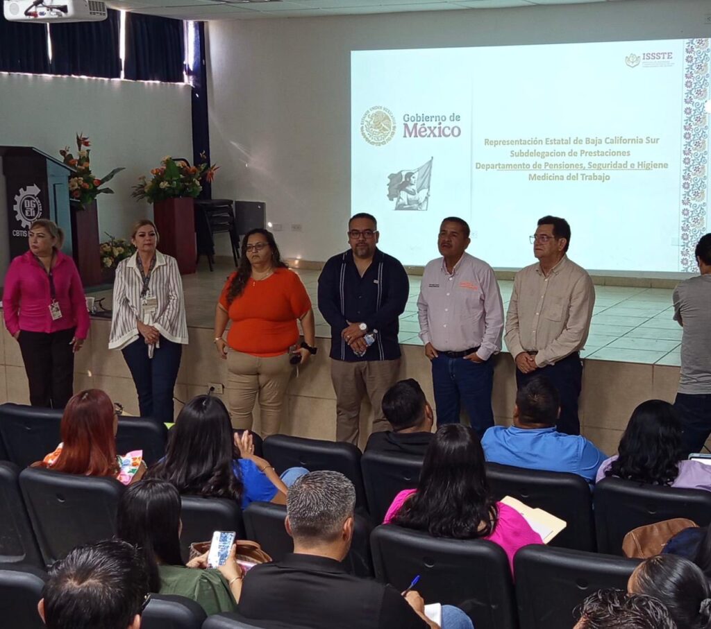 Cabo San Lucas, Baja California Sur, a 9 de octubre de 2025.- Con el propósito de reforzar las acciones de prevención y promoción de la seguridad laboral, la Oficina de Representación del Instituto de Seguridad y Servicios Sociales de los Trabajadores del Estado (ISSSTE) en Baja California Sur, a través de la Subdelegación de Prestaciones de la entidad, llevó a cabo una jornada de capacitación en materia de riesgos de trabajo.