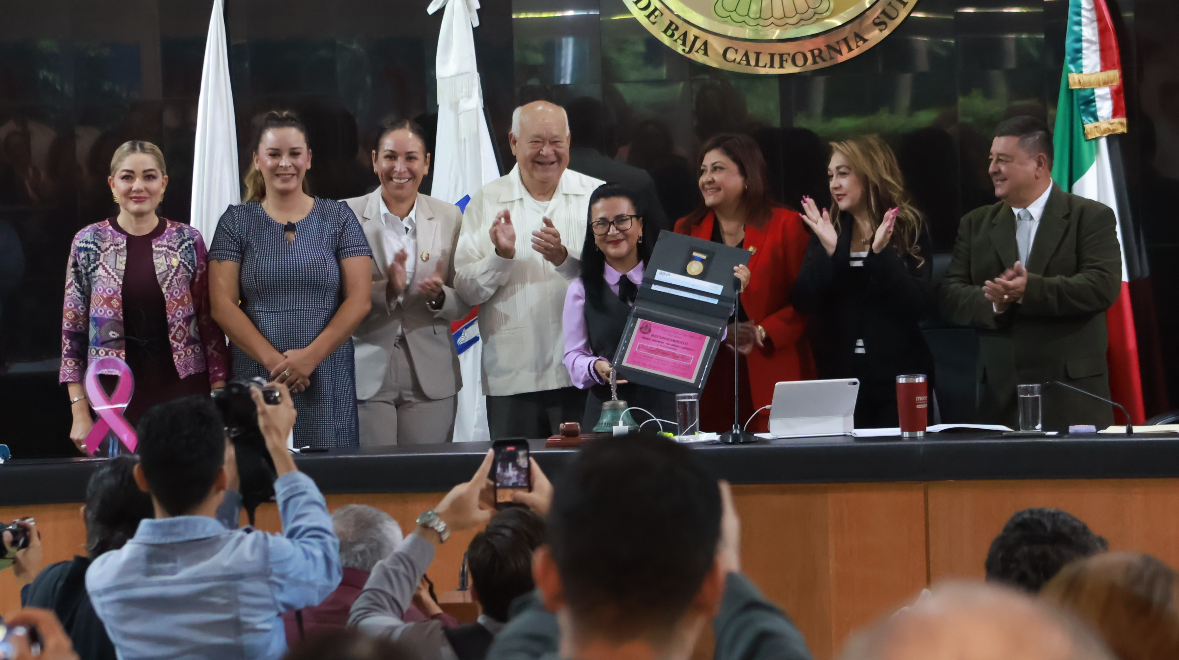 El gobernador del estado, Víctor Manuel Castro Cosío, asistió al Congreso del Estado para presenciar la entrega de la medalla “María Dionisia Villarino Espinoza” a la doctora Martha Candelaria Reyes Becerril, en reconocimiento a su destacada labor en la divulgación de la ciencia entre la niñez y juventud sudcaliforniana.