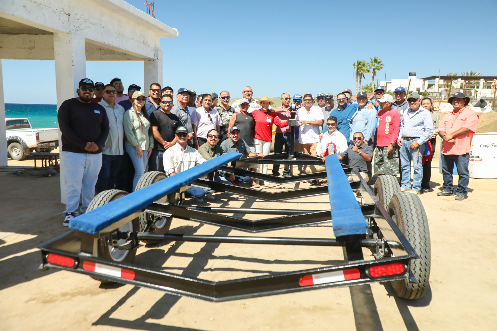 La presidenta municipal de La Paz, Milena Quiroga Romero, realizó la entrega de un remolque a las cooperativas pesqueras de Punta Lobos y Todos Santos, con el propósito de facilitar sus labores diarias y como muestra del respaldo a la comunidad pesquera.