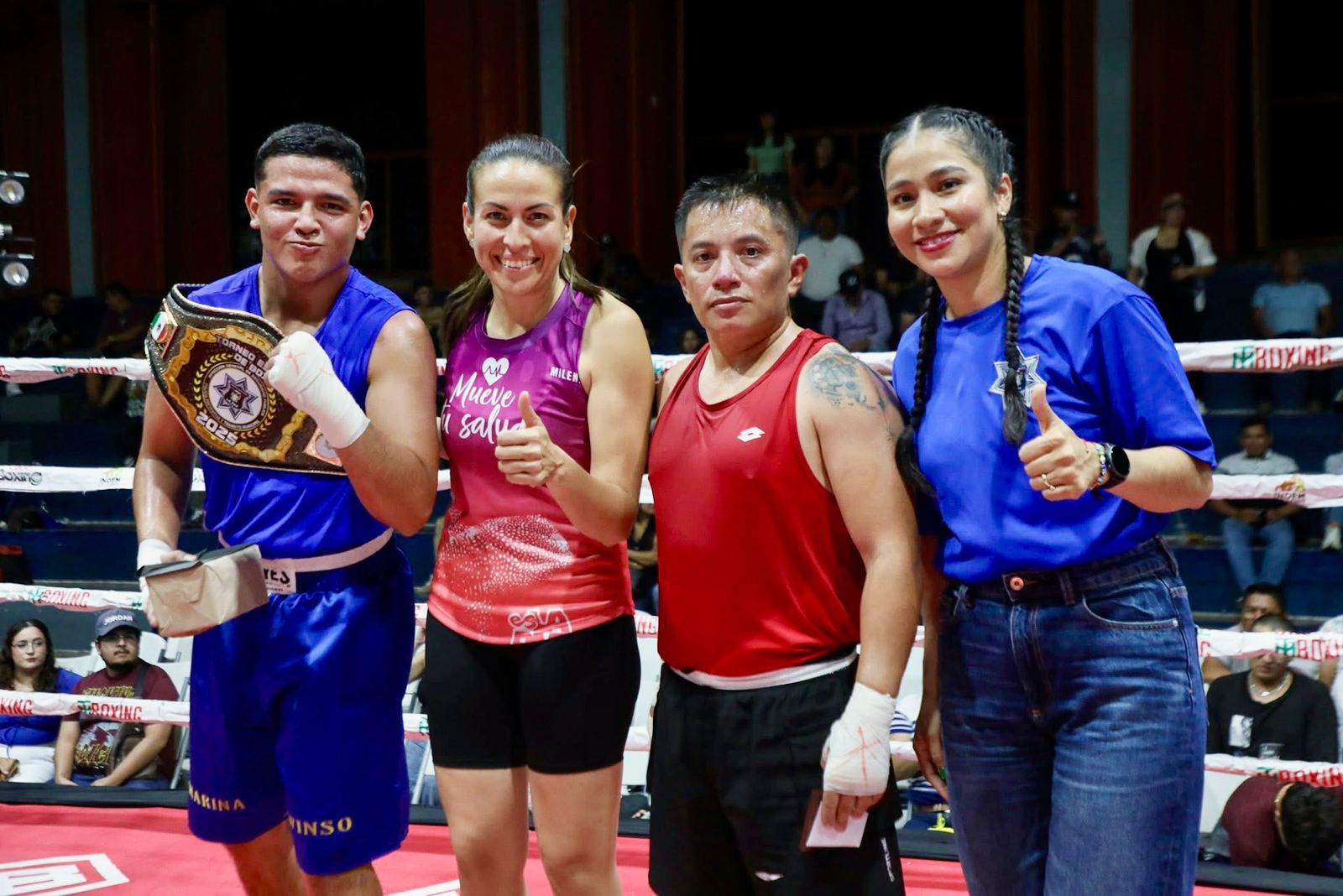 Este evento reunió a autoridades y representantes de los tres órdenes de gobierno. En total, 24 elementos de distintas corporaciones demostraron su esfuerzo y compromiso dentro del cuadrilátero, protagonizando 12 combates en un ambiente de compañerismo y sana competencia.