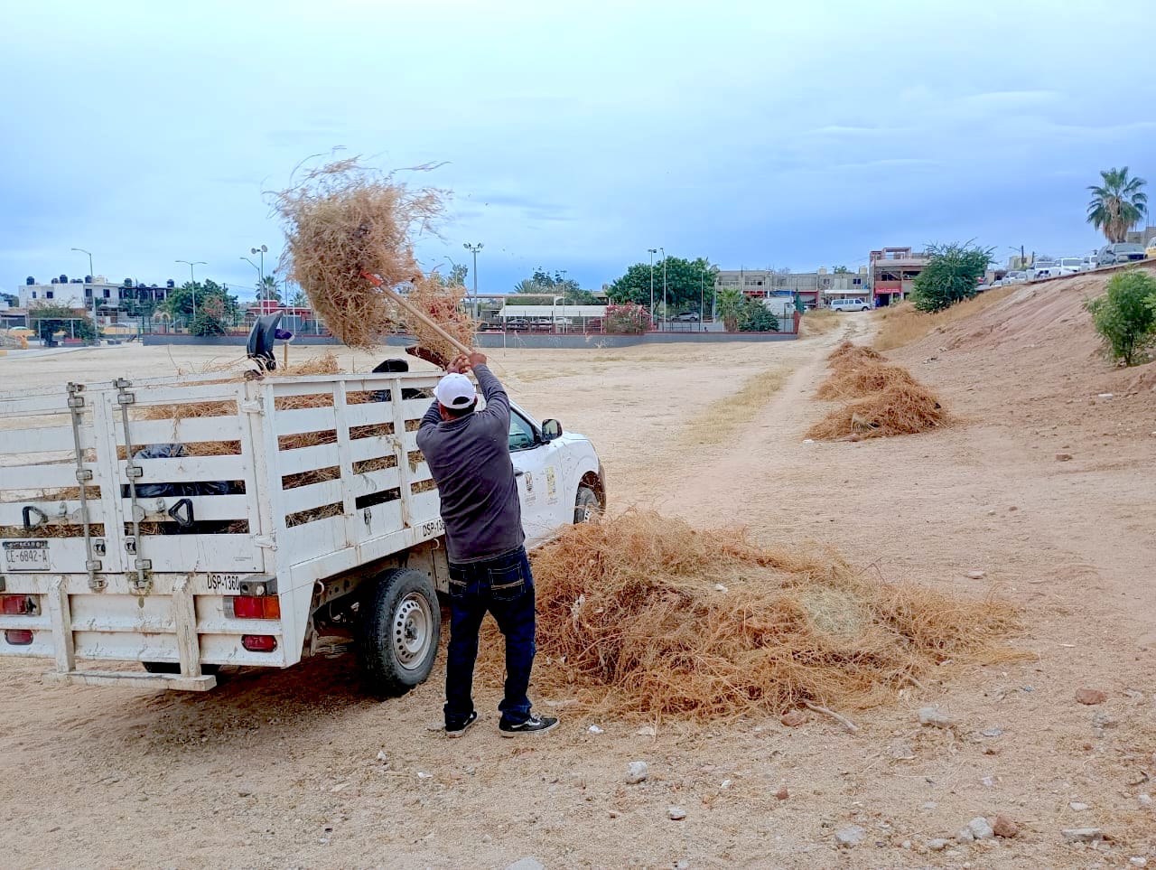 Los Cabos, Baja California Sur.- Como parte de los trabajos permanentes orientados a mantener en óptimas condiciones los espacios públicos de Cabo San Lucas, la Coordinación de Servicios Públicos realizó una jornada intensiva de recolección de basura y ramas en distintos parques y unidades deportivas de la delegación, logrando retirar tres camiones de desechos acumulados.