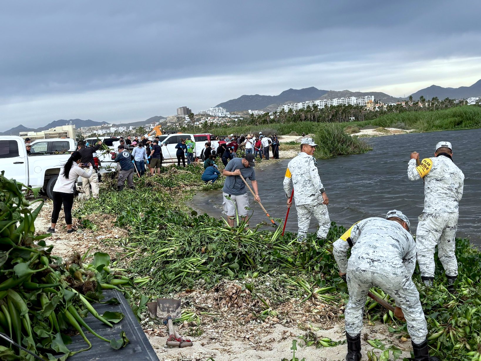 Los Cabos, Baja California Sur.– El XV Ayuntamiento de Los Cabos, a través de la Dirección General de Ecología y Medio Ambiente, informó que como resultado de la jornada de limpieza realizada en el Estero de San José del Cabo y zonas aledañas, fueron retiradas más de 70 toneladas de lirio acuático y lechuguilla, especies invasoras que afectan el equilibrio del ecosistema.