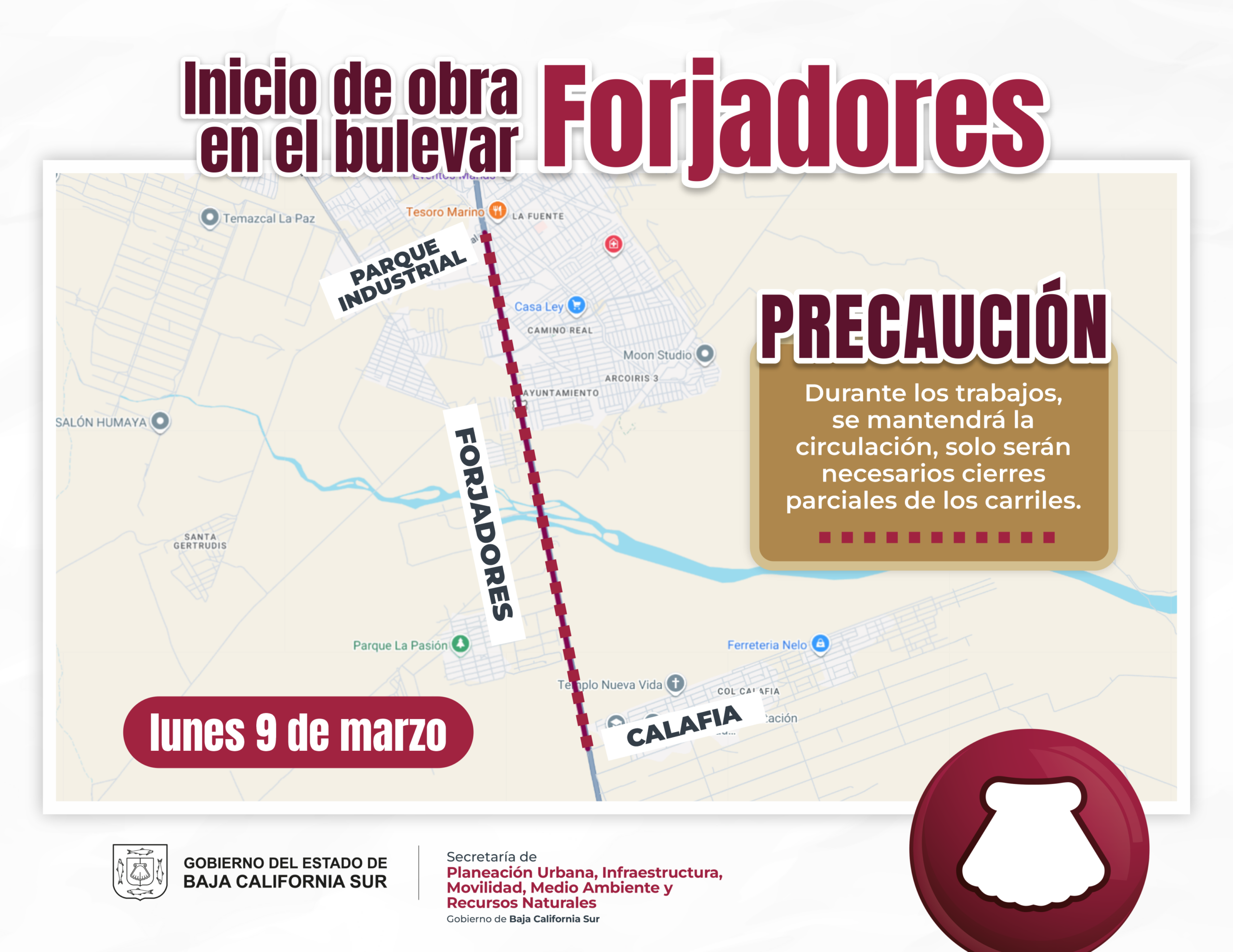La Secretaría de Planeación Urbana, Infraestructura, Movilidad, Medio Ambiente y Recursos Naturales (SEPUIMM) iniciará el lunes 9 de marzo la rehabilitación de la carretera Transpeninsular, en el tramo que comprende del acceso a la colonia Calafia al Parque Industrial.